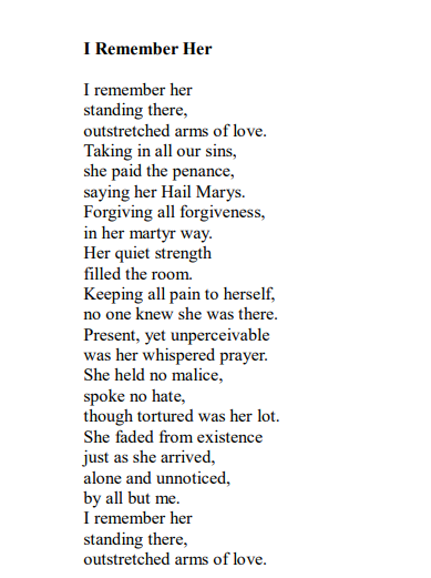 I am honored to have my poem “I Remember Her” published in the Pangolin Review. Thank you editors Amit Parmessur and Jane Mayflower.