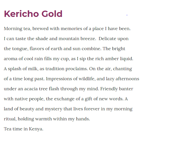 Thank you to the editors of Gideon Poetry Review for publishing my three poems: “Kericho Gold,” ” In Pursuit of Excellence, ” and “The Taste of Sweetness.”