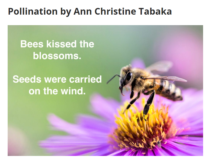 I am thrilled to have my 10-word story “Pollination” published in Potato Soup Journal – 10 Word Stories. Thank you editor Julie Howard.