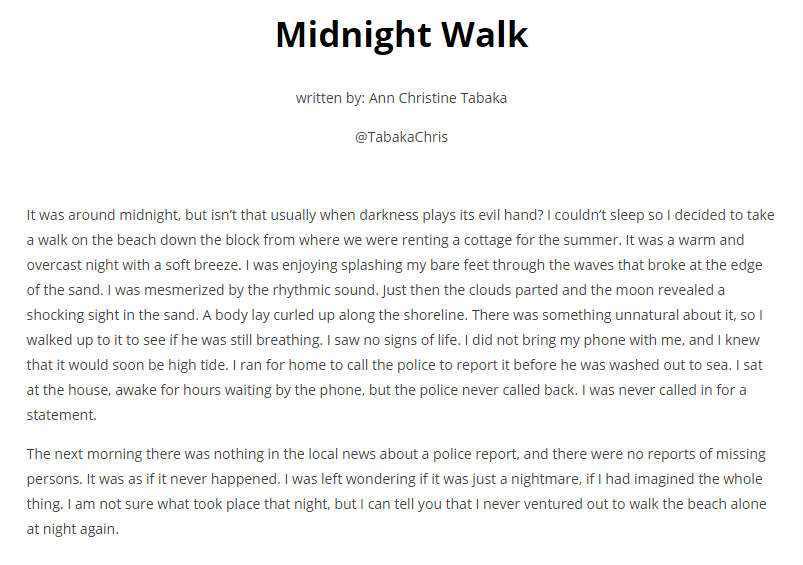 I am delighted to have my short story “Midnight Walk,” published in Spillwords today. Thank you editor Dagmara.