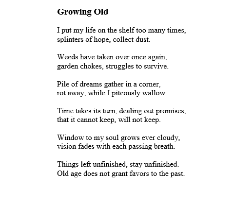 I am overjoyed to have two poems, “Retirement Woes,” and “Growing Old,” published in the Muddy River Review. Thank you Editor Zvi A. Sesling.