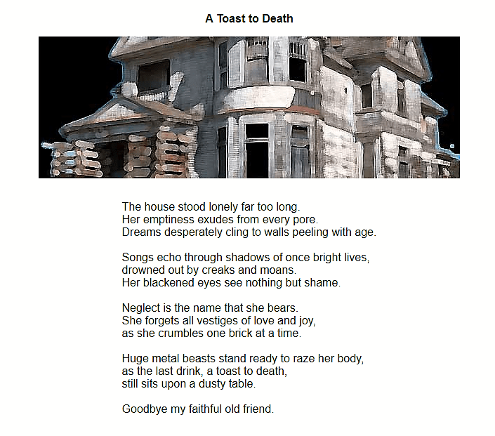 I am thrilled to have my poem “A Toast to death” published by The Piker Press. Thank you editor Sand Pilarski!