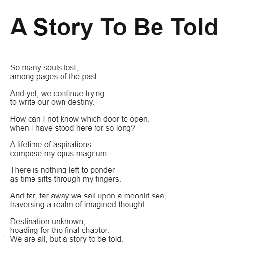 I am thrilled to have my poem “A Story to be Told” published by World of Myth. Thank you Editor in Chief Stephanie J. Bardy!