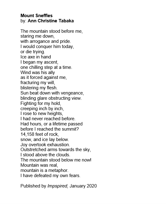 I am beyond thrilled to have my poem “Mount Sneffles” published by Silver Birch Press Blog, in their LANDMARKS Series. Thank you Editor Melanie!