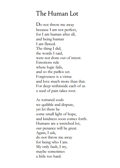 I am thrilled to have two poems in the CultureCult Poetry Anthology Hope. Thank you Editors Scott Thomas Outlar and Jay Chakravarti. “The Human Lot,” and “Repentance’ (pages 19-20).