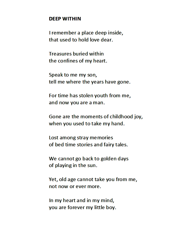 I am excited to have my two poems (reprints) “Our Playhouse” and “Deep Within,”