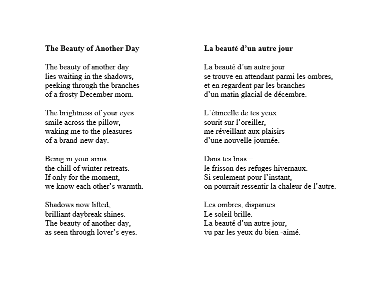 I am delighted to have 5 of my poems translated into French, and placed on the Blog of my dear talented friend Vatsala Radhakeesoon!