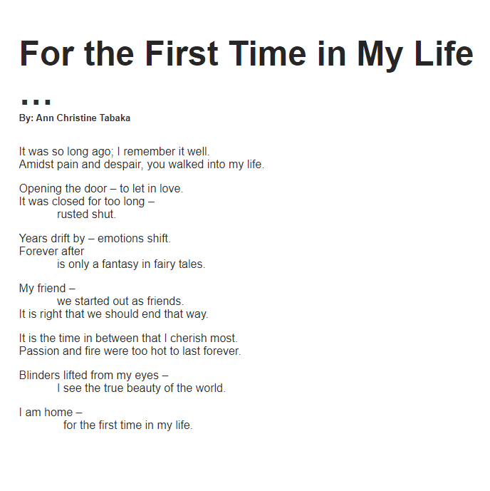 I am thrilled to have my poem “For the First Time in My Life” published by The World of Myth. Thank you, editors David K. Montoya and Stephanie J. Bardy!