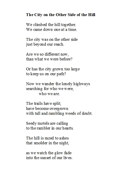 I am super thrilled to have my poem “The City on the Other Side of the Hill” published by Sparks of Calliope. Thank you, Editor Randal A. Burd.