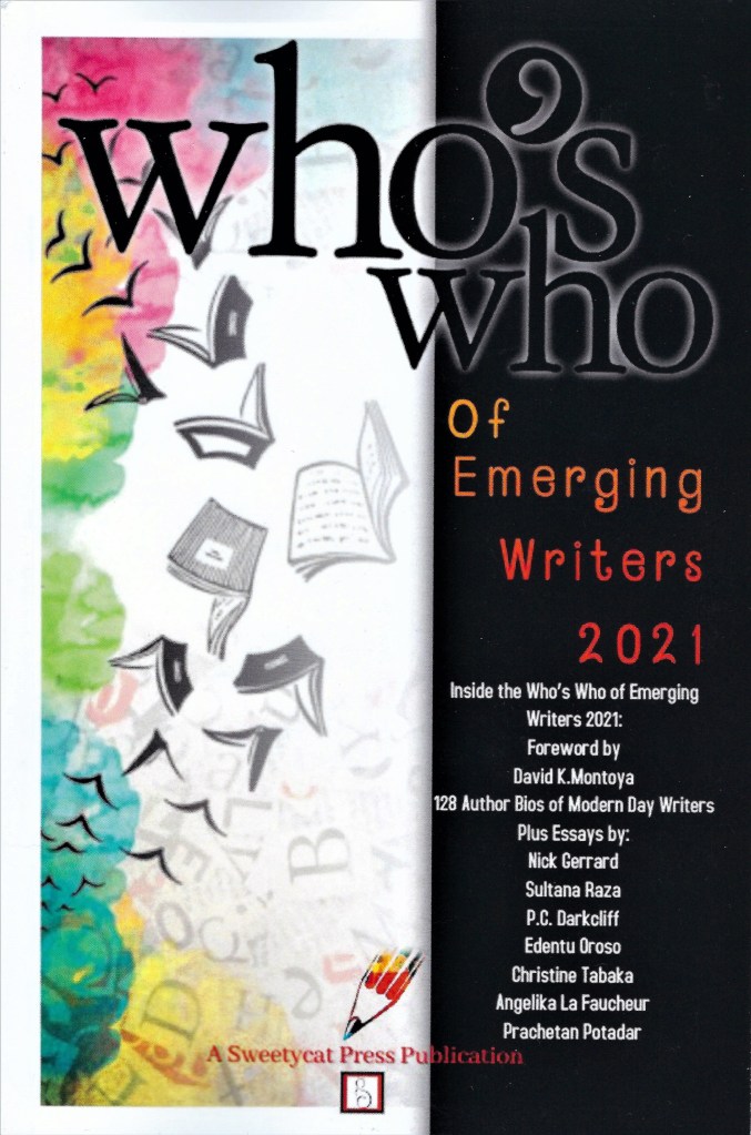 I am elated to be included in the second annual “Who’s Who of Emerging Writers 2021” compiled and published by Sweetycat Press, with the bios of 128 writers from all around the world. I am also honored to be the author one of the 8 essays in this book: “Being an American Poet is Harder Than You’d Think.”