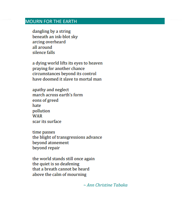 I am overjoyed to have my poem “Mourn for the Earth” (page 28) published by Pomona Valley Review. Thank you, editors Amanda Riggle, Kasinda Lang, & Natalie Peterkin!