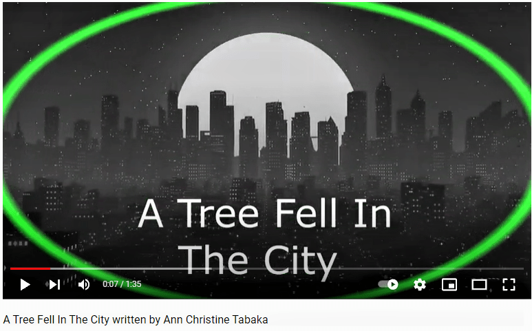 Here is my poem “A Tree Fell in the City,” from my latest book “I No Longer Hear You Sing.” Alan Johnson outdid himself composing the music, creating the video, and reading. Please go over and have a listen. Thank you for your support!
