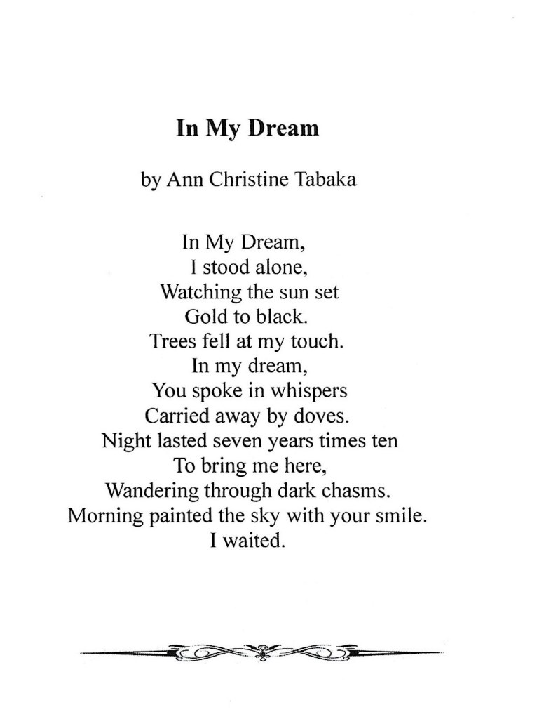 I am super thrilled to have my poem “In My Dream” published by The Nightingale Poetry Journal. Thank you, editor Claire Langston!