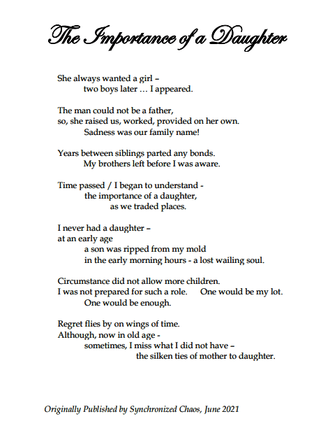 I am elated to have 5 poems (reprints) published by Open Skies Quarterly / Shrouded Eye Press. My work is on pages 19-26. Thank you, editor Keith Sparks.