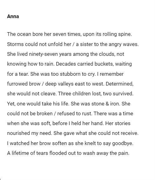I am ecstatic to have two very personal poems, “Anna” and “Lost Summers of My Youth,” published by Bourgeon Magazine. Thank you, editor Gregory Luce.