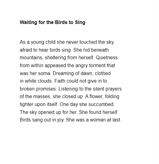 I am excited to have 5 of my poems published by In Parentheses. Thank you, editor Phillipe Chatelain.