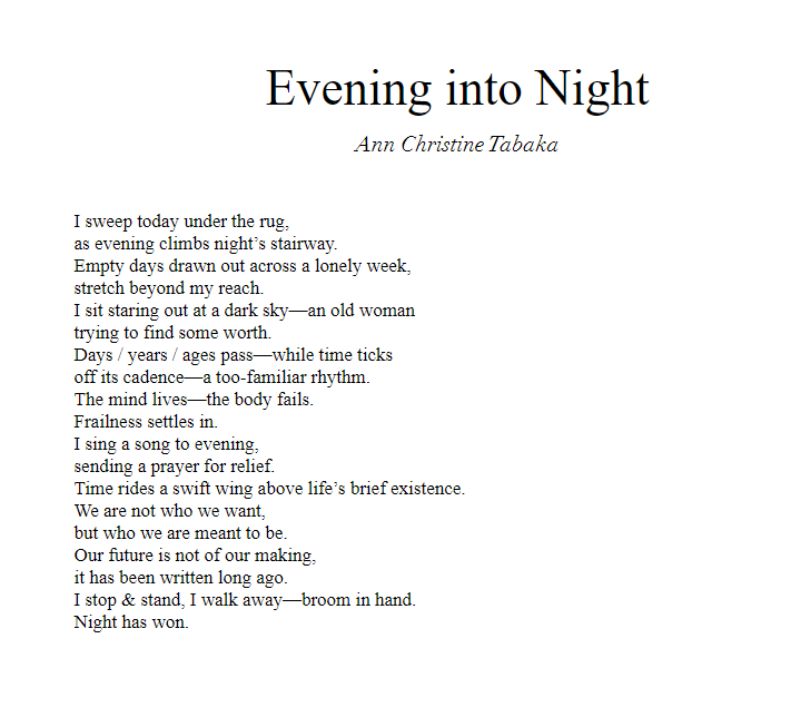 I am elated to have my poem “Evening into Night” published by Reverie Magazine.