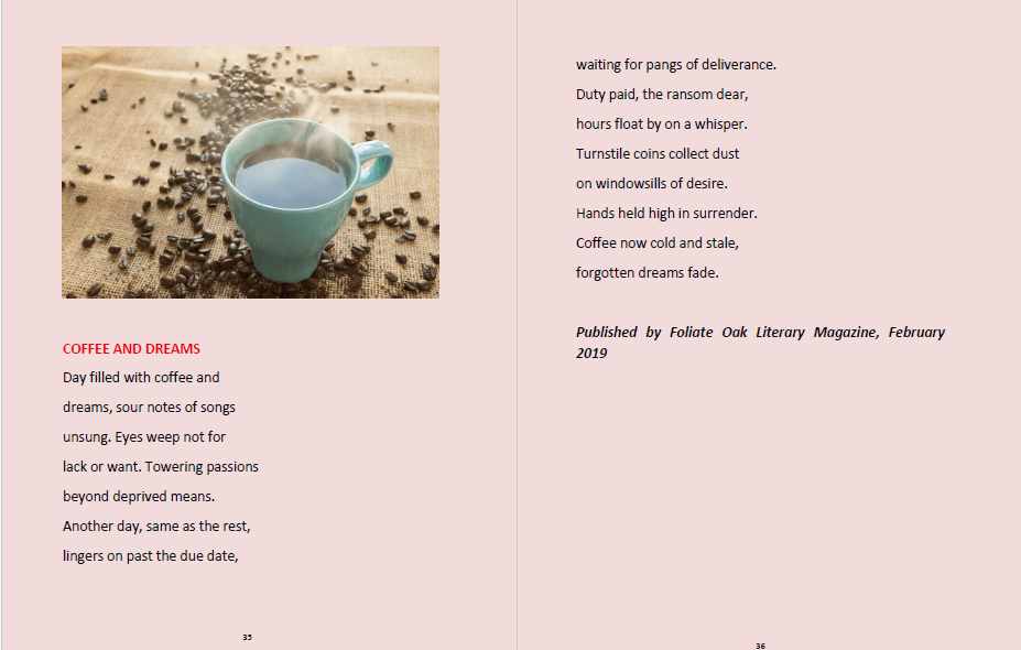 I am thrilled to have my poem “Coffee and Dreams” (reprint) published by GloMag. Thank you, editor Glory Sasikala.