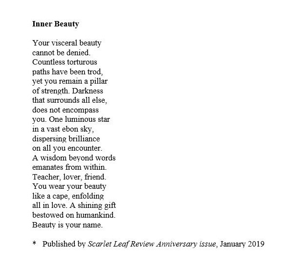I am thrilled to have my poem “Inner Beauty” (reprint) published in the GloMag print issue. Thank you, dear editor Glory Sasikala.